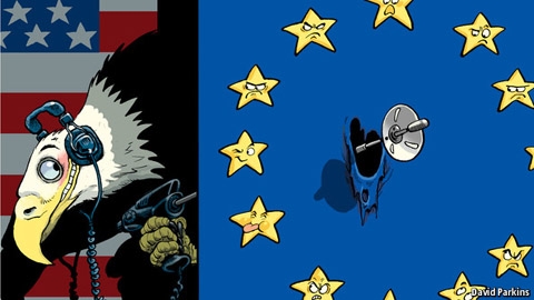 | H́nh minh họa chương tŕnh nghe lén của NSA và các quốc gia châu Âu. Ảnh: Economist |