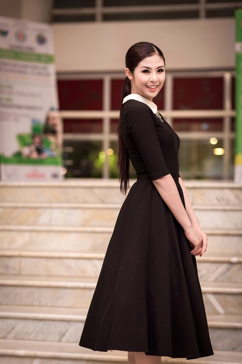 Hoa hậu Ngọc Hân huyền bí với váy đen