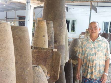 | Ông Lâm với bộ sưu tập bom ḿn của ḿnh |