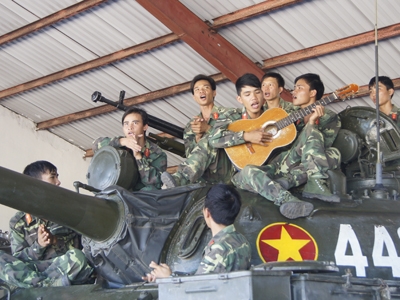 Sau khẩu lệnh đanh gọn: “Lên xe chiến đấu” của trưởng xe, các chiến sĩ ào lên những chiếc tăng T54, nhanh chóng ngồi vào các vị trí lái xe, pháo thủ, nạp đạn, súng 12,7 ly... Đây là một trong nhiều phương án luyện tập của những người lính xe tăng ở Quân khu 5.