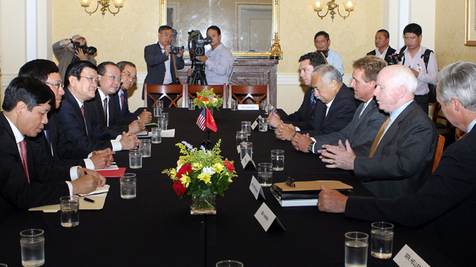 Chủ tịch nước VN Trương Tấn Sang phát biểu cùng Ngoại trưởng John Kerry