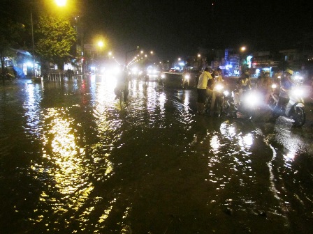 Cột nước “khổng lồ” phun xối xả giữa phố