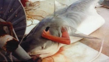 Sự thật về bức ảnh người rạch bụng cá mập chui ra