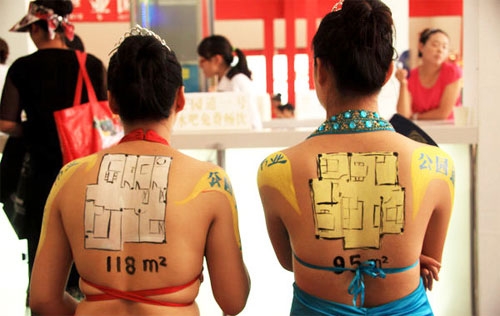 Vẽ thiết kế lên lưng trần người mẫu để bán nhà
