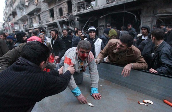 Một người đàn ông bị thương ở Allepo, Syria
