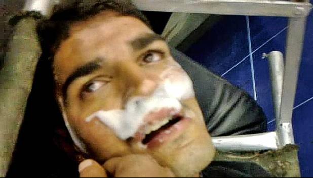 Nghi vấn sử dụng vũ khí hóa học: Một người đàn ông được đưa vào bệnh viện ở Syria được cho là từ một vụ nổ khí độc ở Aleppo. Ảnh từ video. Jack Hill/The Times