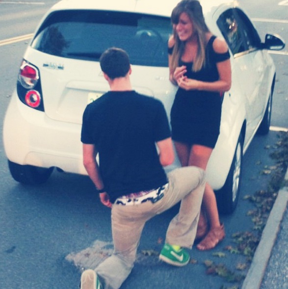 Matt đã cầu hôn Samantha vào tháng 9/2013 tại New London, New Hampshire, Mỹ với sự giúp đỡ của cảnh sát địa phương. Khi hai người đang lái xe, cảnh sát đã yêu cầu họ dừng lại. Matt phải ra khỏi xe, một viên cảnh sát đã còng tay anh. Samantha khóc nức nở vì sợ hãi, ngay sau đó Matt quỳ xuống cầu hôn cô với chiếc nhẫn đính hôn. Lúc này, bạn bè của Matt xuất hiện chúc mừng họ.