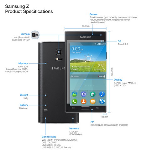 Sau một thời gian dài xuất hiện dưới dạng các tin đồn và liên tục bị trì hoãn, Samsung đã chính thức giới thiệu chiếc smartphone đầu tiên sử dụng nền tảng Tizen do chính hãng phát triển, với tên gọi Samsung Z.