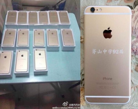 H́nh ảnh những chiếc iPhone 6 in ḍng chữ “Lớp 1992, trường trung học cơ sở Maoshan”
