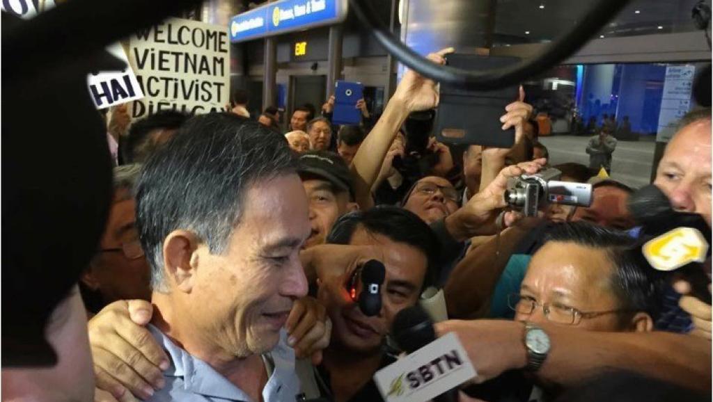 Blogger Điếu Cày vừa được thả ra vào chiều tối ngày 21/10/2014 và đã được đưa ra sân bay ngay sau đó để bay sang Hoa Kỳ. Ông đã đến sân bay Los Angeles ngay tối hôm đó và đã được những người ủng hộ ông đón tiếp nồng nhiệt.