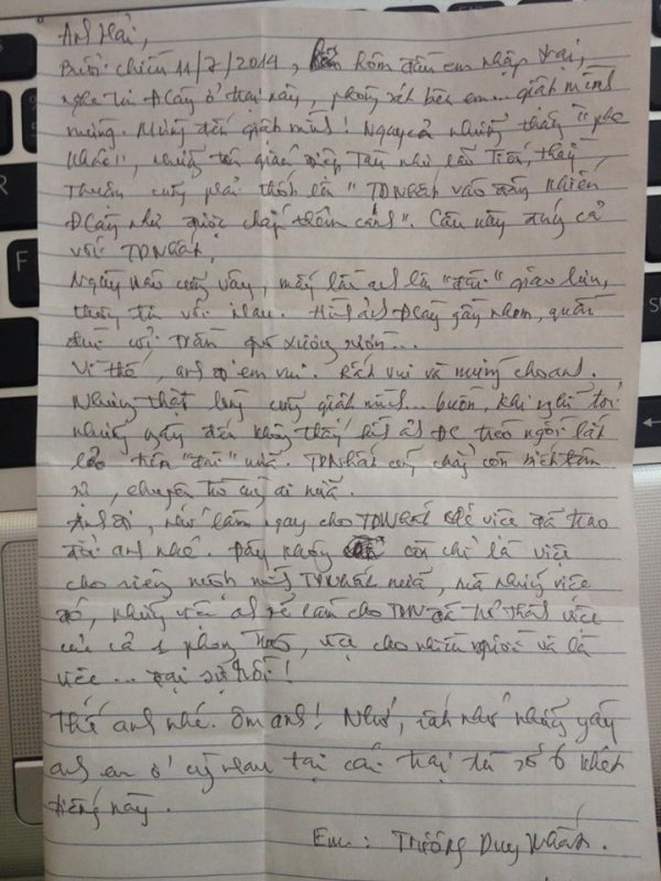 “Những hình ảnh đầu tiên ngay khi bố mình vừa về nơi nghỉ ngơi tối hôm qua, đó là lấy những lá thư và đơn từ của anh em tù nhân mà ông đã khâu vào sau chiếc áo ra. Ai bảo ông không có hành trang, ai bảo hành trang của ông nhẹ nhàng ?!”