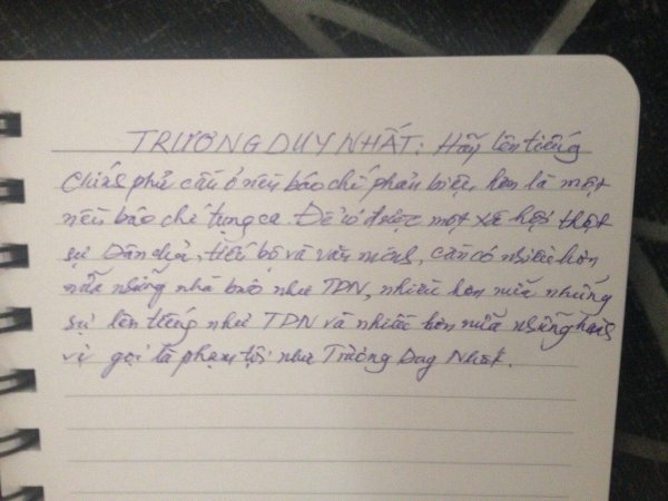 Chính phủ cần một nền báo chí phản biện hơn là một nền báo chí tụng ca – Trương Duy Nhất (ghi chép của ông Nguyễn Văn Hải).mk