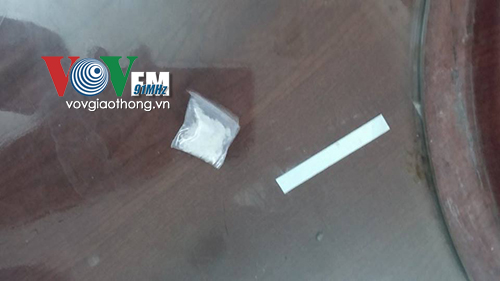 Phát hiện thấy tổ công tác 141, đối tượng ngồi sau là Đỗ Đăng Quân (1987, trú ngõ 93, Hoàng Văn Thái, Hà Nội) đã nhanh chóng móc trong túi ra 1 gói nhỏ rồi ném xuống dải phân cách giữa 2 làn đường.