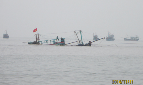 Đang trên đường vươn khơi, tàu cá mang số hiệu NA - 93233 - TS va phải một tảng đá ngầm, bị đắm trên biển, 10 ngư dân gặp nạn. Đang trên đường vươn khơi, tàu cá mang số hiệu NA - 93233 - TS đã va phải một tảng đá ngầm và bị đắm trên biển. 10 ngư dân đang làm việc trên tàu được các phương tiện khác ứng cứu kịp thời nên may mắn thoát nạn.