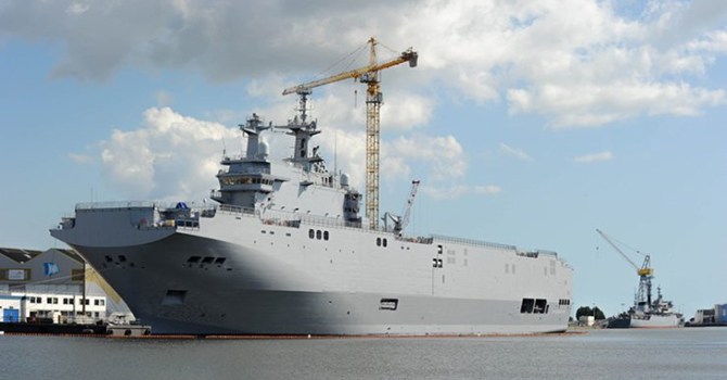 Các thủy thủ Nga bị cấm lên tàu chở trực thăng Vladivostok lớp Mistral, được xây dựng cho Hải quân Nga và hiện nằm tại cảng Saint-Nazaire, Pháp.