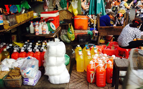 Sau một hồi xem hàng PV thắc mắc; “Chị ơi! Sao loại dầu này không thấy nơi sản xuất và hạn sử dụng?”. Ngay lập tức, chị Hương giật can dầu ăn lại và đanh giọng: “Dầu ăn này là dầu ăn đong nên mới rẻ thế. Tôi thường xuất cho các quán cơm là chủ yếu. Hàng này là loại giá rẻ nhưng đảm bảo chất lượng tốt, không kém gì dầu ăn thương hiệu, không có ý định mua thì tránh giùm để tôi còn bán hàng”.