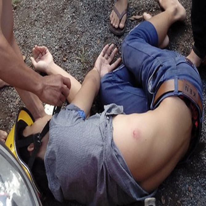 Nạn nhân Nguyễn Văn T. bị ngất ngay trước mặt tổ CSGT. (ảnh người dân cung cấp).