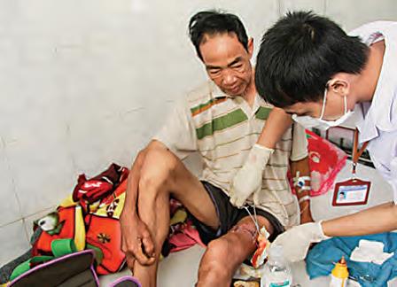 Cả hai đều bị heo rừng húc, cắn nát chân. Trong đó, ông Đường bị cắn nát chân phải, thực hiện phẫu thuật khâu 4 lớp với 50 mũi. Anh Trực bịrách 2 vùng đùi trái vàphải, phẫu thuật khâu 4 lớp với khoảng 100 mũi. Hiện 2 chân anh Trực vẫn chưa thể cử động được...