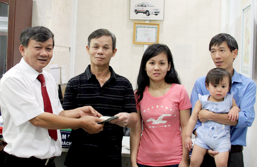 Chị Lý và gia định nhận lại tài sản từ tài xế Nguyễn Dũng. Ảnh: Ngọc Quỳnh.