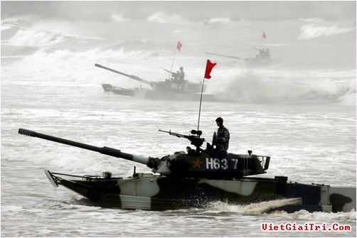 Xe tăng quân đội Trung Quốc tập trận chiếm đảo – Ảnh: Reuters