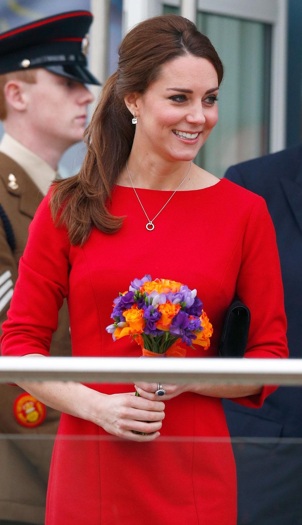 Một tờ báo đưa tin rằng, vị công nương 32 tuổi đang mang bầu đứa bé thứ 2, đã được để mắt đến khi cô đến thăm những em bé Đông Anglia. Có rất nhiều lời khen dành cho cô vì hành động cao cả của mình. Và phong cách thời trang của cô cũng không phải ngoài lề. Middleton đã chọn một chiếc váy đỏ được thiết kế bởi Katherine Hooker, ôm sát toàn thân và không để lộ bụng bầu.