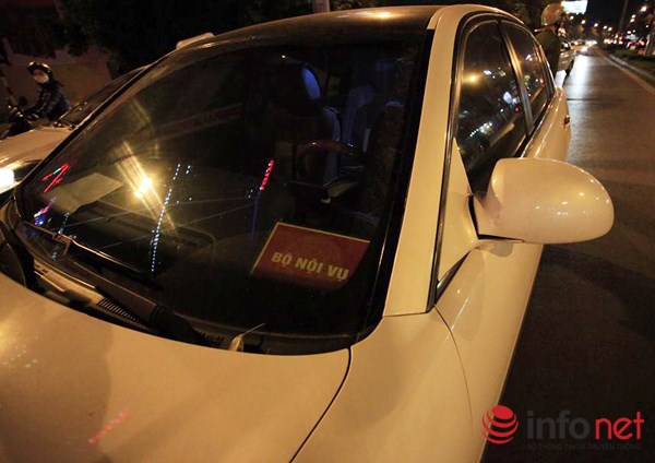 Trên kính trước xe ô tô vẫn còn biển Bộ Nội vụ.