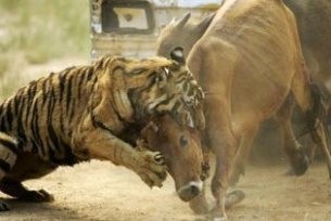 Chỉ trong tích tắc, nó vật con bò ra và nó chỉ nghe được tiếng, con bò la lên được vài cái “ọ… ọ” rồi cả đám ùa chạy theo đàn bò, đàn trâụ tán loạn.
