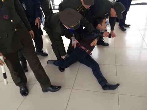 Nam thanh niên bị lực lượng An ninh khống chế. (Ảnh: otofun).