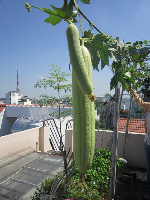 Mướp hoa nặng kí lúc lỉu trên giàn