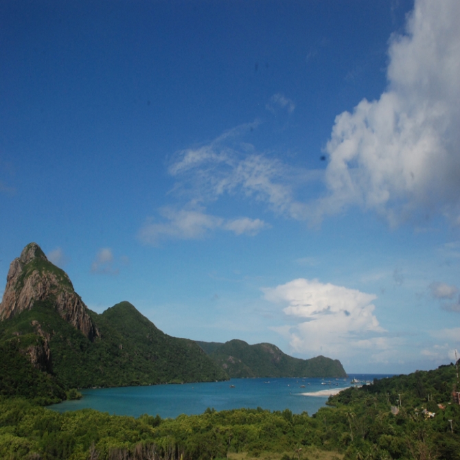 Những ngày ở Côn Đảo chúng tôi được anh Nguyễn Hoài Trung, một “thổ địa” của mảnh đất này đưa đi thăm thú nhiều nơi. Anh Trung là dân đảo đời thứ hai sau thế hệ của cha mẹ anh từng sinh sống tại đây. Đưa chúng tôi đến đỉnh tình yêu, anh bảo: “Không biết tự khi nào có đỉnh này. Còn cái tên nghe rất lãng mạn ấy thì tôi được cha kể lại là có từ thời người Pháp đặt chân lên đảo”.