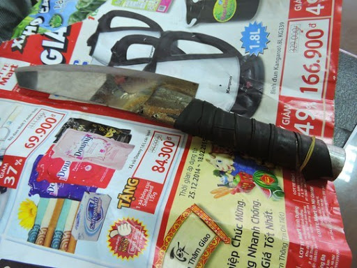 Hung thủ vứt con dao gây án ngay trước cửa nhà một người dân ở phường 12, TP Vũng Tàu. Chủ của căn nhà trên nhặt được con dao và giữ lại để giao nộp cho cơ quan công an. Ngày 20/12, cơ quan công an đã dẫn Điểm ra vị trí trên và thu giữ vật chứng.