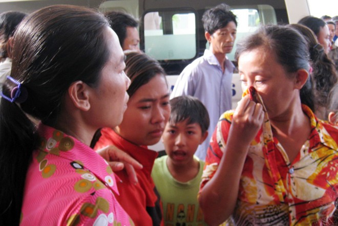 Người thân của các nạn nhân sụt sùi bên hành lang bệnh viện.
