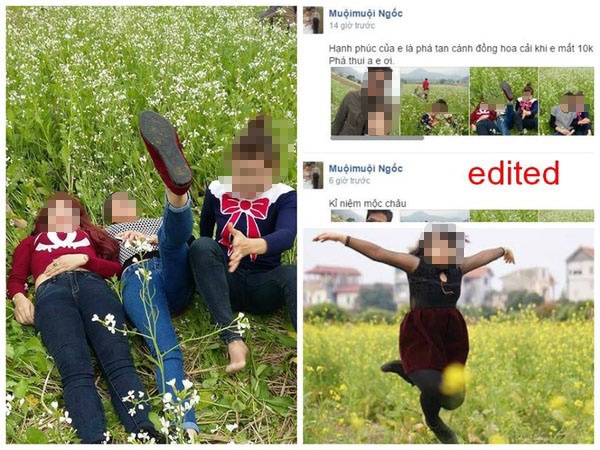 Loạt ảnh "khoe chiến tích" dẫm lên cánh đồng hoa cải không thương tiếc của một bạn trẻ đã khiến rất nhiều người lắc đầu trước ý thức của những người trong ảnh.