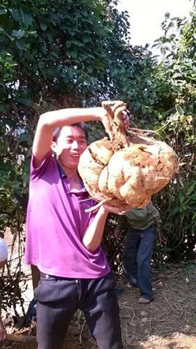 Củ đậu khổng lồ nặng tới 15kg, xuất hiện ở Tân Lạc, Hòa Bình, gây xôn xao vì kích thước lớn đáng kinh ngạc.