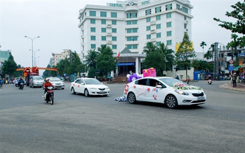 Đoàn rước dâu trông rất đẹp mắt với toàn xe SH, Vespa và những ông già Noel ở Quảng Ngãi.