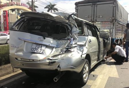 Tại hiện trường, phương tiện bị hư hỏng nặng nhất là chiếc ô tô 7 chỗ hiệu Innova BKS 70A-076.72 do tài xế Võ Văn Phương điều khiển. Các phương tiện còn lại bị hư hỏng ở vị trí đầu và đuôi xe. Rất may vụ tai nạn không gây thương vong về người.
