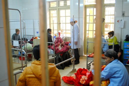 Nhìn qua then cửa sổ vào chỗ con trai đang nằm điều trị, bà Hoa rưng rưng khi nhắc đến sự việc cháu gái nội của bà là Vũ Thị Chi (14 tuổi, con anh Mỹ) được cho là bị gã hàng xóm hại đời.