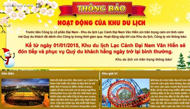 Trước đó, thông báo được đăng tải 4/11 cho biết, Đại Nam sẽ đóng cửa từ ngày 10/11 đến hết năm 2014, tuy nhiên đến ngày 10/11 thời gian đóng cửa được lùi lại đến ngày 20/11 đến 31/12/2014.