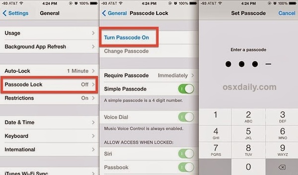 Đầu tiên, hãy đặt passcode cho máy (cái này phần lớn mọi người dùng iPhone, iPad thì đều làm rồi hen). Passcode này mỗi lần mở máy đều phải nhập vào 4 chữ số ấy.