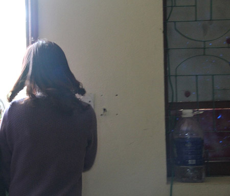 Quan sát thấy trong nhà có nhiều người ra vào, một người phụ nữ gần 30 tuổi đóng vai bạn bè của Công Vinh rồi vào nhà giả vờ chụp ảnh. Thấy vậy, bà Hồ Thị Tuệ (mẹ Công Vinh) vui vẻ để người này vào.