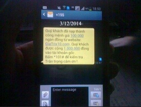 Để nhận khuyến mại, người dùng được hướng dẫn cú pháp nạp thẻ, trong đó dãy số bí mật để xác thực là nhân viên của Viettel như “quảng cáo” chính là số điện thoại của kẻ xấu. Khi người dùng thao tác theo cú pháp kẻ xấu cung cấp, số tiền người dùng nạp được chuyển thẳng đến số điện thoại nói trên.