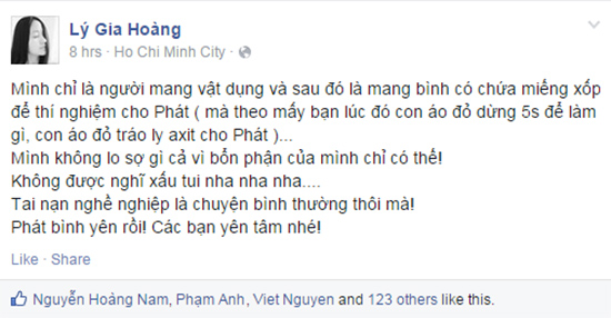 Trên trang cá nhân của một thành viên BTC sau khi chương trình hạ màn, người này đã chia sẻ hình ảnh mới nhất của Tấn Phát sau khi được đưa tới bệnh viện. Người này cho biết Tấn Phát chỉ bị bỏng nhẹ và có thể cười vui vẻ.