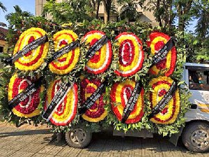 Tôi không biết cụ thể nó là cái gì không biết giai đoạn nào vì lúc ấy rất nhiều đòan đến viếng. Trong lúc tôi đang đứng bắt tay những người họ đến trước thì có xảy ra chuyện lộn xộn to tiếng nào đấy mà tôi cũng chưa định hình được đấy là ai và việc gì xảy ra. Sau này thì thấy mọi người bảo có khoảng 10 vòng hoa có tên những người gửi vòng hoa đến hoặc là tôi nghe thấy một số người bị gạt ra và tôi biết chuyện xảy ra lúc ấy trong văn phòng chỗ làm lễ tang.
