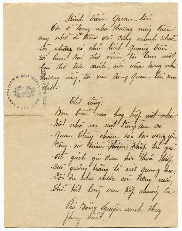 Old  Supseries Resize Bức thư của Phó bảng Nguyễn Sinh Huy gửi quân y sĩ Albert Sallet