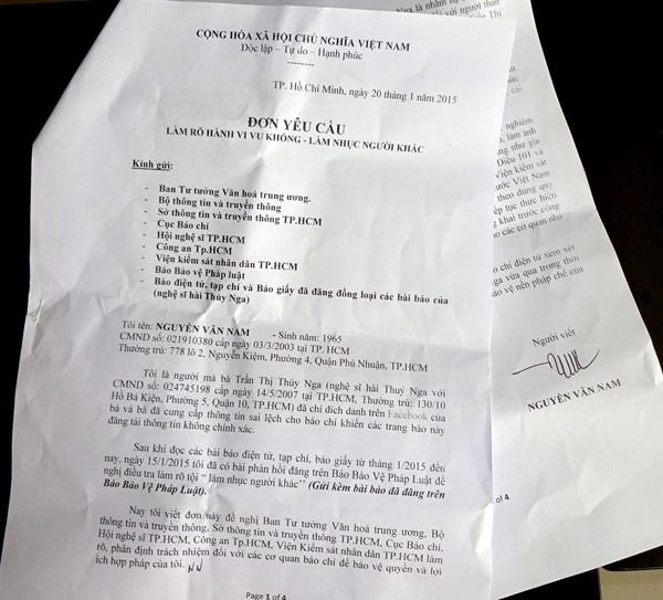 Theo tin tức trước đó, trên trang cá nhân của mình, nghệ sĩ Thúy Nga đã tố chồng cũ "cướp" hơn 7 tỷ rồi bỏ trốn biệt tăm. Kèm theo đó, danh hài Thúy Nga còn đăng tải lá đơn "Đề nghị tư vấn pháp luật" về mối quan hệ giữa cô và người đàn ông tên Nguyễn Văn Nam - chồng cũ của danh hài.