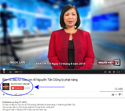 Bản tin nguyên thủy của Người Việt TV được đăng trên kênh Youtube có tên NGUOI VIET ONLINE, là sản phẩm của công ty Người Việt. (Hình: Người Việt)