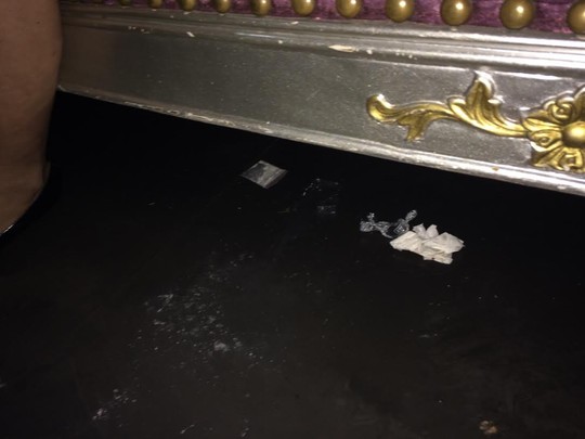 Ma túy được vứt dưới sàn để phi tang. Ảnh: Công an cung cấp