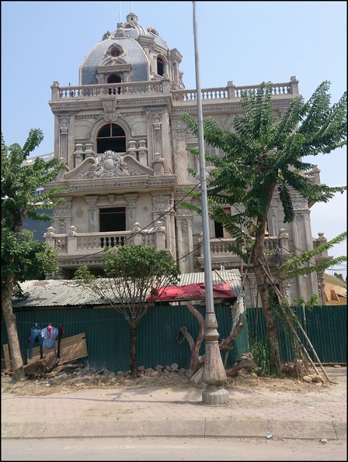 Biệt thự này đã xây dựng khoảng 4 năm nhưng vẫn đang trong thời gian hoàn thiện và ông chủ doanh nghiệp dệt, may đang vân động một số gia đình ở khu này tiếp tục bán lại đất cho ông.