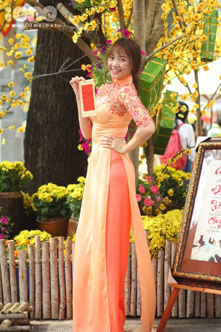 Trương Tử Lâm khoe nét trang nhã với áo dài sang trọng.