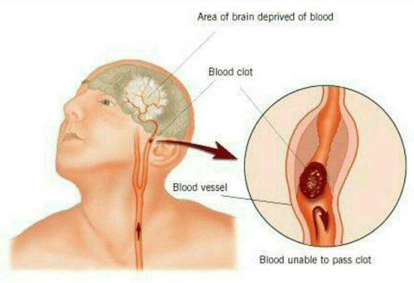 Đột quỵ xảy ra khi một cục máu đông làm nghẽn động mạch nào đó đưa máu đến não. Các loại khác của đột quỵ được gọi là đột quỵ do xuất huyết. Điều này xảy ra khi mạch máu bị vỡ, gây tràn dịch máu từ não bộ.